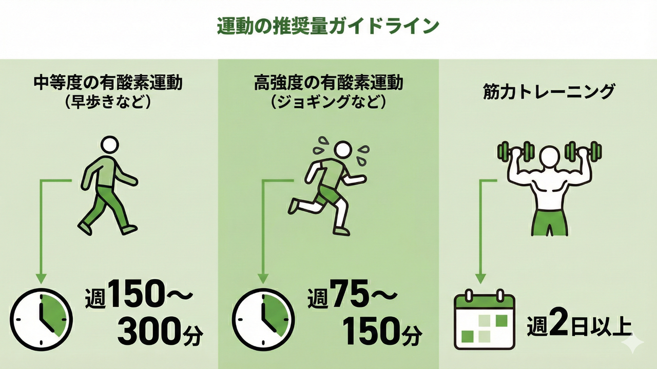 では、具体的にどのくらい運動すればよいのでしょうか。
